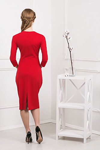 L’abito perfetto dall’ufficio alle serate in compagnia. Raccolto sui fianchi con una lunghezza universale fino al ginocchio vi seguirà in tutti i movimenti. La vita alta sottolinea la parte più snella della vostra sagoma, sviando l’attenzione dalla pancia. Lo scollo sul petto e lo spacco profondo dietro sottolineano la vostra femminilità e grazia. Suggerimenti per la cura. Lavate il vestito a mano in acqua fredda (fino a 30 ° C). Non strizzare!