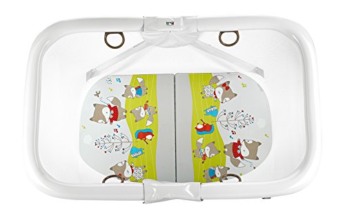 Giostrina smontabile con 3 simpatici pupazzetti in tessuto, removibili per offrire stimoli sonori, visivi e tattili al bambino: