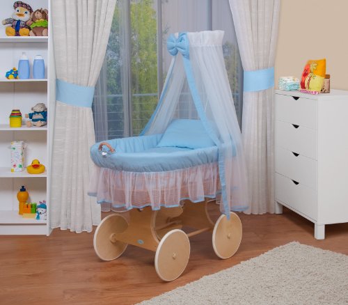 Culla con cappotta – Culla con ruote XXL – IN 9 VARIANTI – WALDIN – celeste